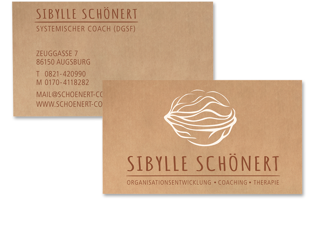 Die Walnuss ist Superfood und harte Nuss. Sie steht für Entwicklung, Wachstum, Verbindung zur Natur. Ist erst mal die harte Schale geknackt, geht es an die leckere Nuss. Die Walnuss ist das Logo von Sibylle Schönert, Augsburg-Native, Naturliebhaberin, Rucksackreisende und Menschenfreundin. Leben ist Entwicklung, weiß sie. Und wenn was wirklich wirken soll, sind immer individuelle Lösungsansätze gefragt, in deren Mittelpunkt der Mensch, das Unternehmen, die Organisation steht. Da braucht es Herz und Hirn, Kreativität und Zielstrebigkeit für Coaching, Entwicklung und systemische Beratung, die den Weg findet und zum Ziel führt.